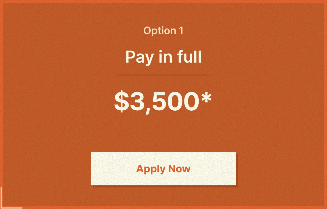 If you’re accepted, you’ll have 48 hours to secure your spot with payment (payment plans available).