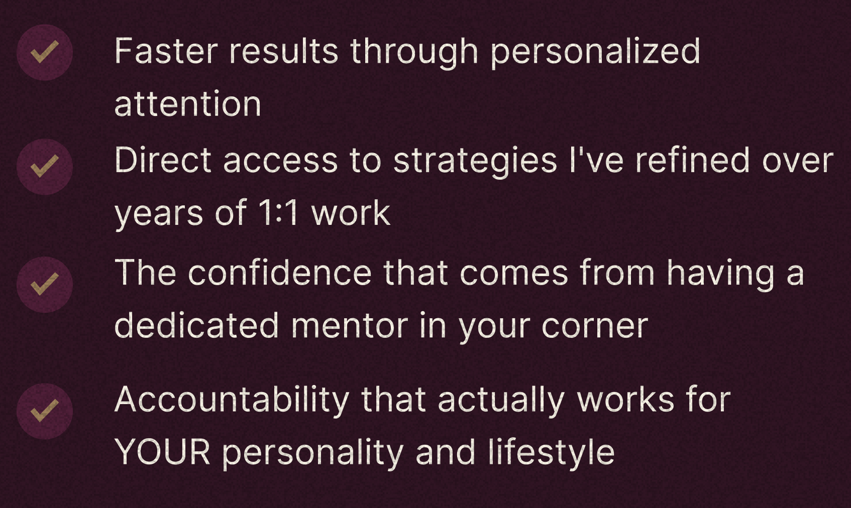 If you're ready to stop settling for "one-size-fits-all" solutions and want a coaching experience designed specifically around you and your goals, let's talk.